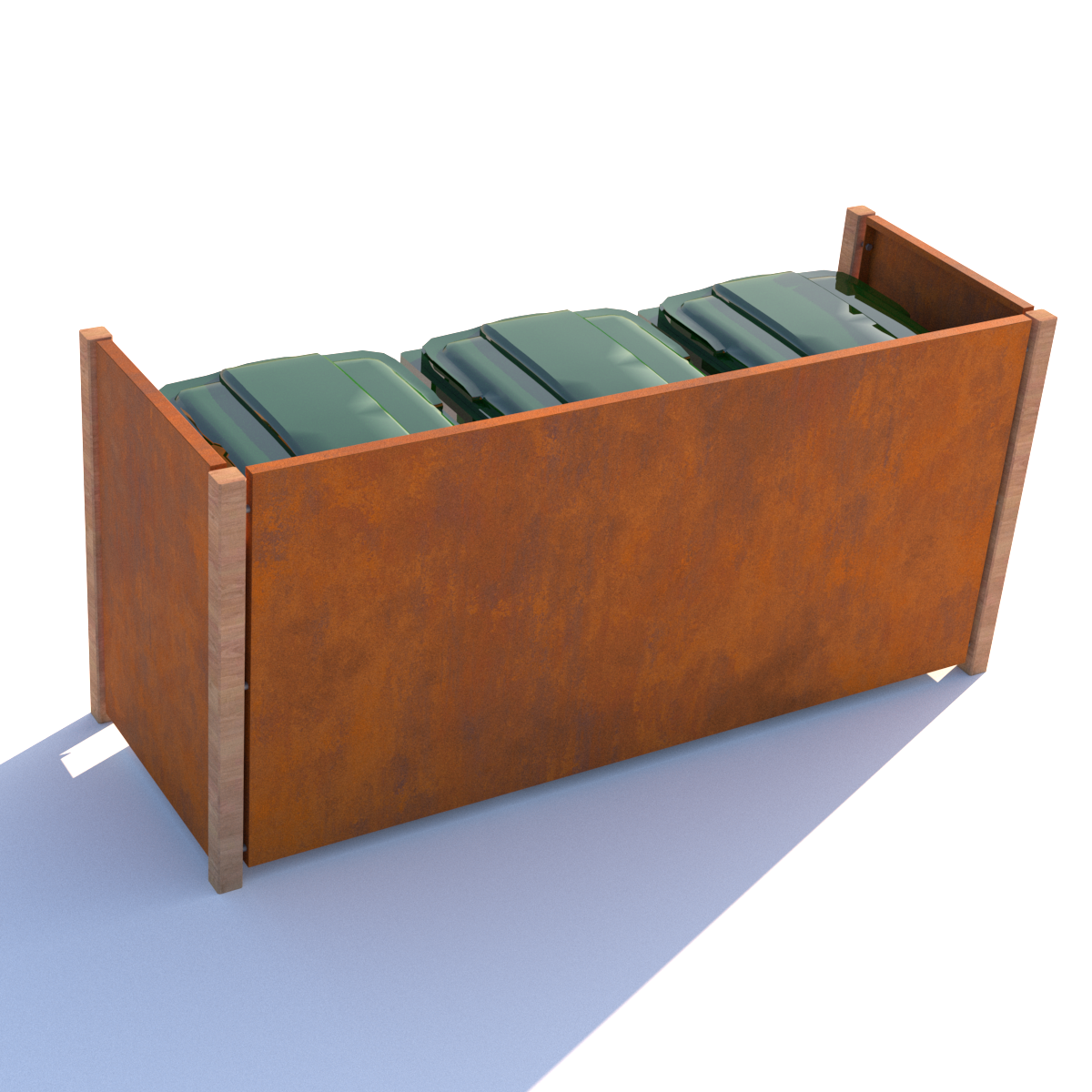 Våra soptunneskydd är ett snyggt och dessutom praktiskt sätt att dölja dina vanligtvis mindre snygga soptunnor. Modellen utan mönster i rostigt Cortén utstrålar klassisk elegans året runt.